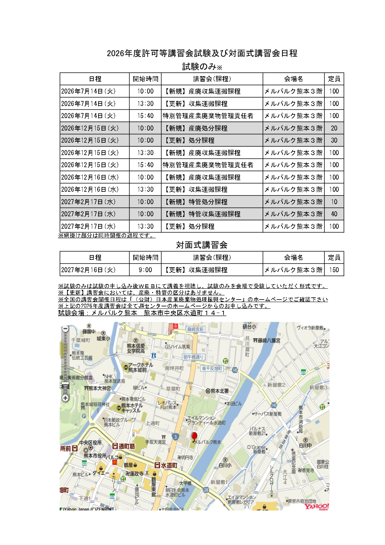 処理業の許可講習会 2026年3月24日(火) 9:00~